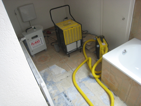 Hierfür haben wir spezielle Geräte zur Raum- und Bautrocknung, um den Estrich und die darunter liegende Dämmschicht zu trocknen.