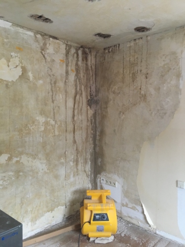 Nach Schadenerkennung und Schadenanalyse muss bei Decken und Wänden, sowie bei eingetretenem Wasser in Estrichen, eine schnelle Trocknung herbeigeführt werden, um größere Schäden zu vermeiden.
